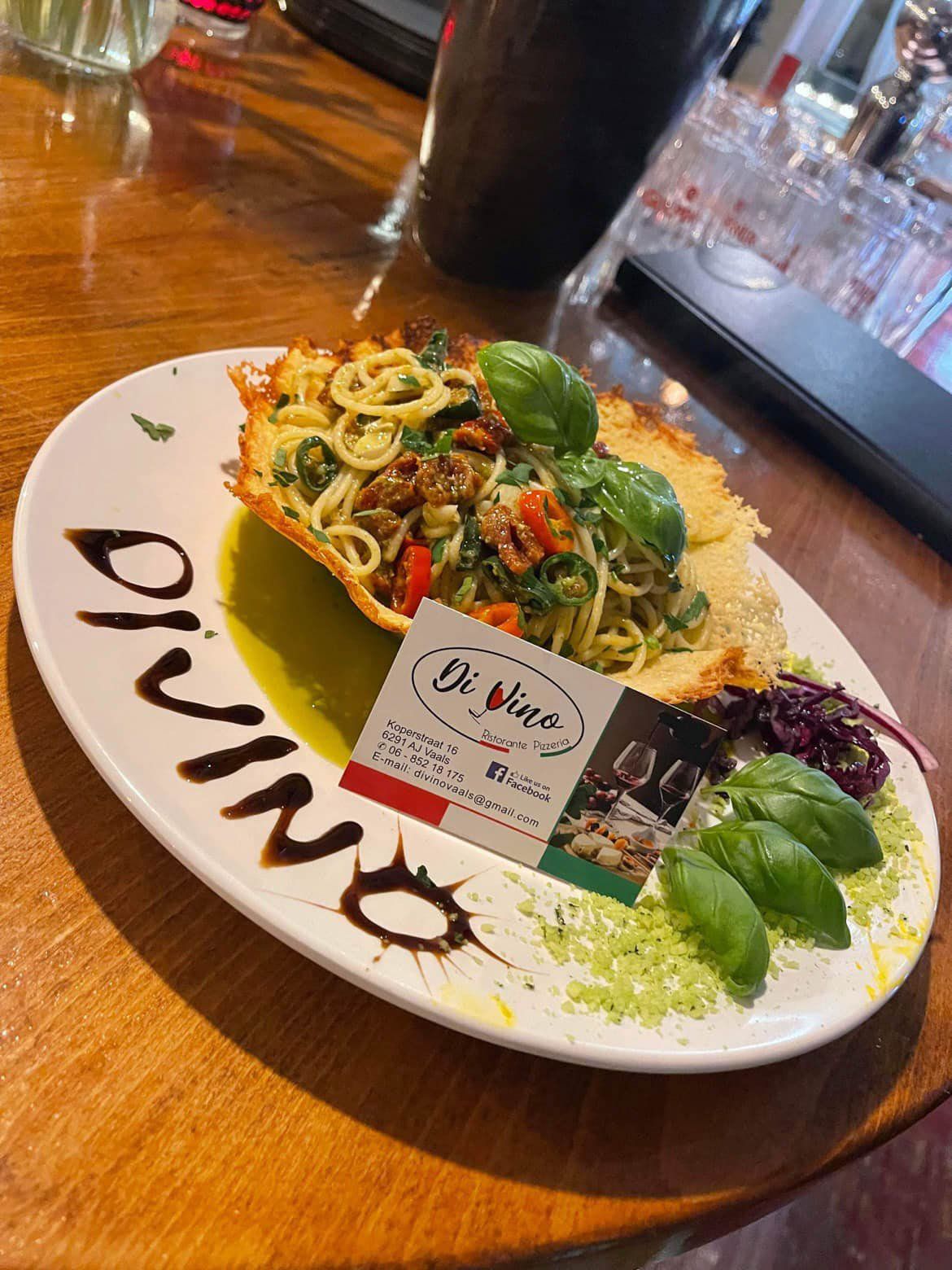 In het pittoreske Vaals, vind je jouw favoriete nieuwe hotspot, Di Vino Vaals – Italiaanse keuken en Wijnbar. Het Di Vino team zet zich 100 procent in om je mee te voeren naar de warme Italiaanse sferen. We serveren de beste & betaalbare wijnen. Met huisgemaakte Italiaanse lekkernijen zonder franjes - waar je bij iedere hap de liefde, warmte en vaardigheid in de kookkunsten van een Italiaanse moeder proeft.